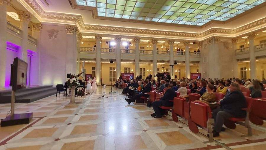 В Президентской библиотеке на Сенатской площади собрались лауреаты международных конкурсов молодых оперных певцов им. Образцовой и концертный хор, которые исполнили арии, романсы и песни русских и зарубежных композиторов.