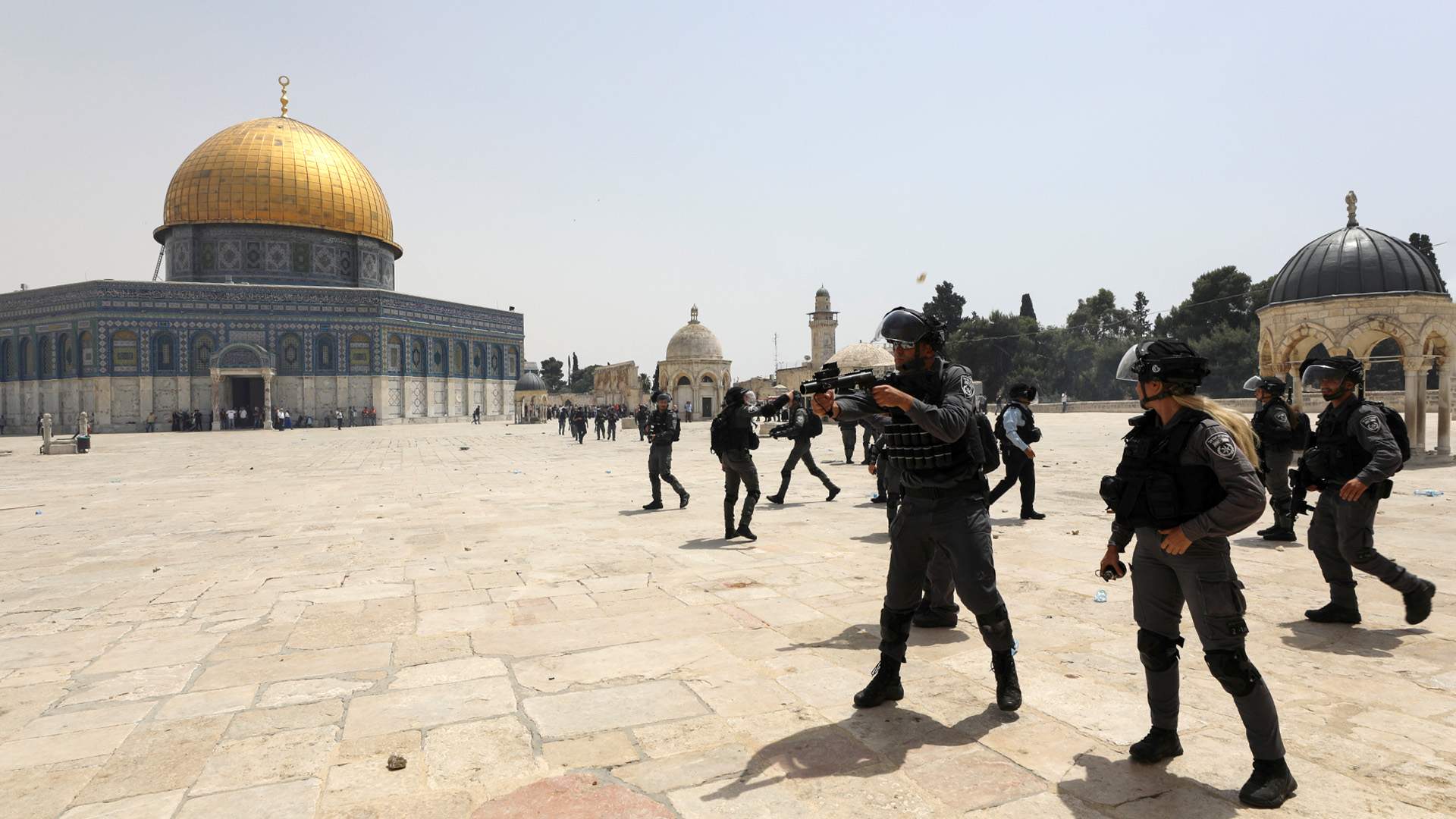 Пятничная акция у Аль-Аксы проходила спокойно, но длилось это всего десять минут. Вдруг из-за золотого купола мечети послышались взрывы: со стороны Виа Долороза к храмовому комплексу подходили израильские полицейские. Снова хлопки взрывов — это светошумовые гранаты. И сразу короткие выстрелы резиновыми пулями.