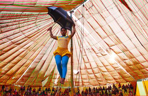 Перед выступлением артисты разбирают цирковой реквизит