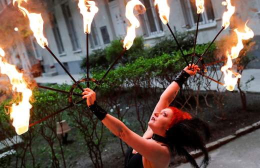 На выступление эквилибристов собралось посмотреть всё село