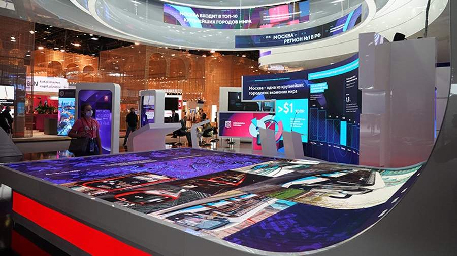 Стенд Москвы продемонстрировал антиковидную находку — все экраны работали интерактивно. Гости могли самостоятельно управлять экраном, открыв QR-код на собственном телефоне и не прикасаясь к панелям.