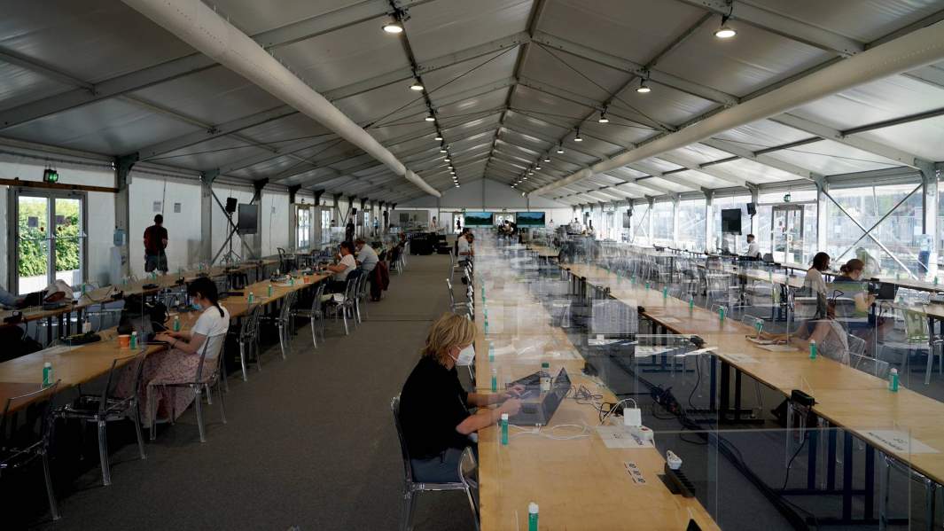 Корреспондентам надо было пройти несколько этапов проверки. Для начала — получить разрешение на въезд от принимающей стороны. Уже в пресс-центре, расположенном в нескольких километрах от виллы Ла Гранж, необходимо было сдать экспресс-тест на коронавирус и отстоять очередь в несколько десятков представителей СМИ. Как заметили корреспонденты «Известий», отстоявшие в этой очереди за бейджем не меньше полутора часов, интерес к саммиту проявили не только российские и американские журналисты, но и СМИ из других стран.