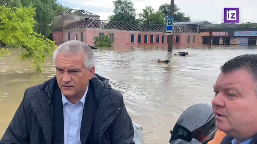 Глава Крыма на надувной лодке передвигается по Керчи