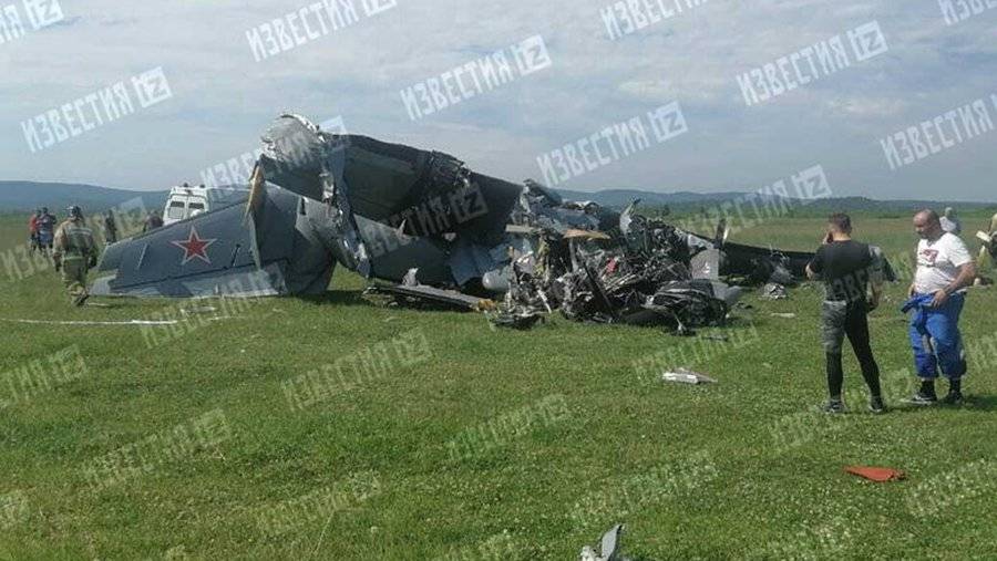 По предварительной информации, самолет не смог набрать высоту при взлете начал делать вираж и крылом зацепил землю.
