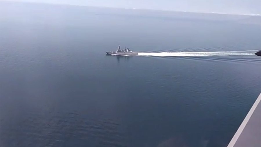 Опубликовано видео слежения самолета и беспилотника РФ за британским эсминцем