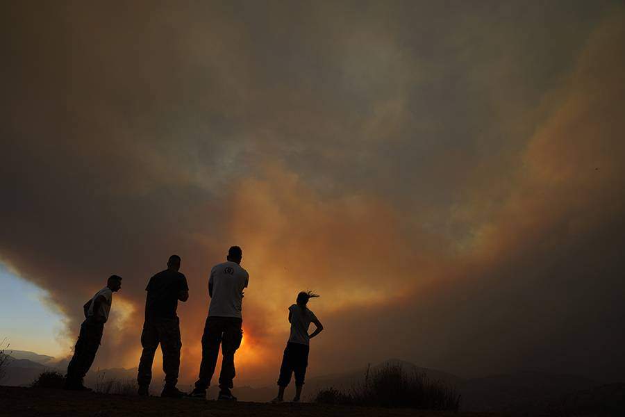 Жители наблюдают лесной пожар на Кипре
