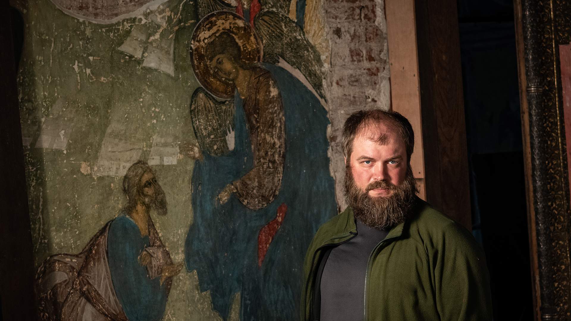 — Первая мысль, конечно, была «надо снять». У меня, как у хранителя, она вызывала полуобморочное состояние, потому что мы нашли памятник in situ, и он должен здесь же и оставаться. И понятно, конечно, что росписи, увы, придется закрыть — потому что иконостас не может стоять с «дырками». Другое дело, если бы это была одна композиция — можно было бы подумать о том, что можно как-то выставить несколько икон. С осени начнется следующий этап реставрации, и нужно будет разобрать фактически половину иконостаса с южной стороны. Я совершенно не знаю, получится у нас или нет, поскольку иконы вынимаются с великим трудом, — выяснилось, что когда-то иконостас был с обратной стороны сбит гвоздями наискось. Но там прячутся главные оставшиеся сокровища, третью часть ширины собора занимает стенка с неизвестной сохранной живописью.