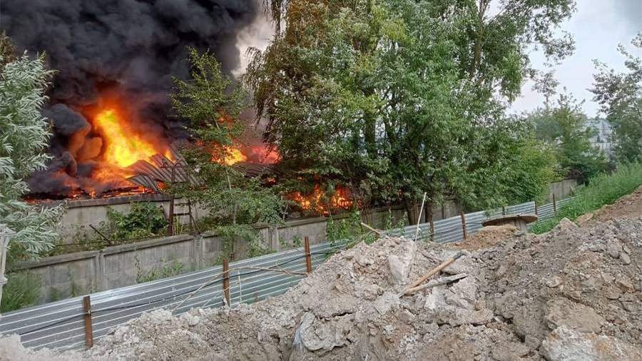 Крупный пожар охватил здание склада в Балашихе