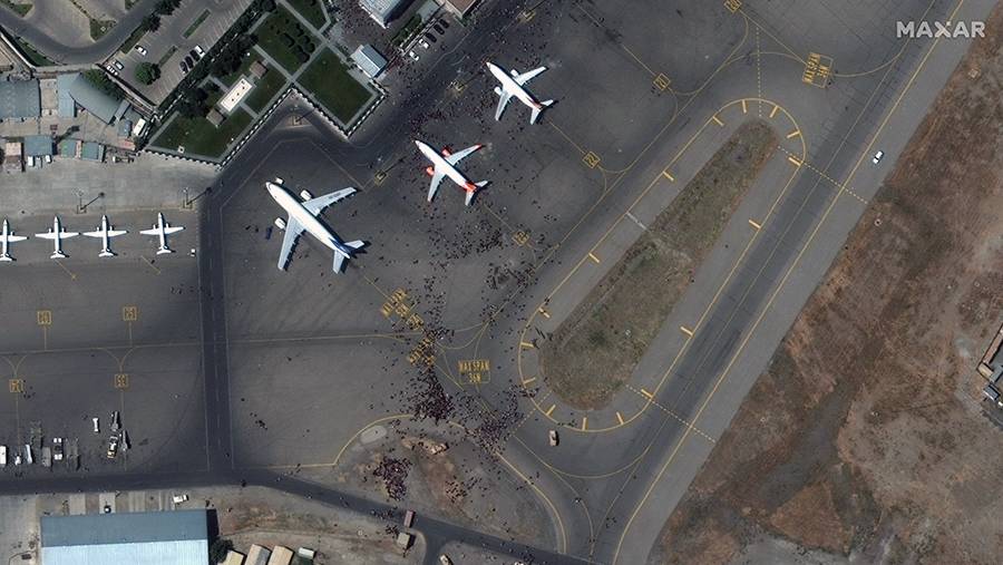 В аэропорту Кабула уже несколько дней сохраняется хаос. Местные жители пытаются попасть на территорию аэропорта, чтобы улететь из страны. 16 августа сообщалось, что минимум семь человек погибли из-за хаоса.