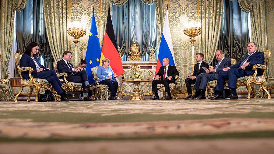 В Москве начались переговоры президента России Владимира Путина и канцлера Германии Ангелы Меркель. Встреча 20 августа проходит в Зеленой гостиной Большого Кремлевского дворца.