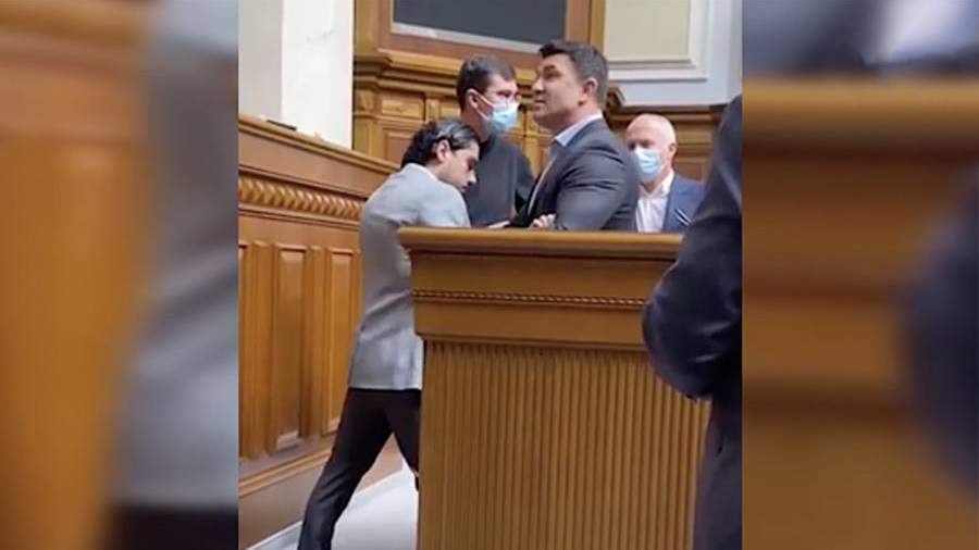В раде Украины произошла потасовка между депутатами. Член пропрезидентской партии «Слуга народа» Николай Тищенко силой оттащил Гео Лероса, который был исключен из этой же партии, от трибуны из-за оскорблений в адрес президента страны Владимира Зеленского, передает РИА Новости в четверг, 9 сентября.