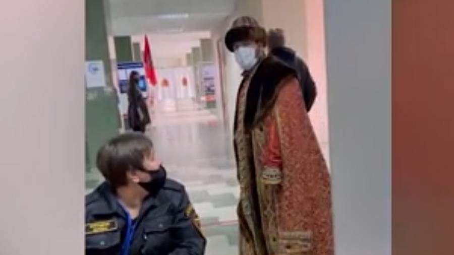 На мужчине была шапка, длинная шуба с рукавами и сапоги царской эпохи. При входе на избирательный участок он заявил, что не имеет при себе «ни клинка, ни кинжала».