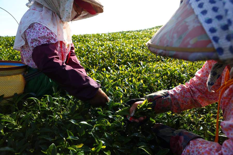 Люди работают на плантациях и обработке чая днем и ночью