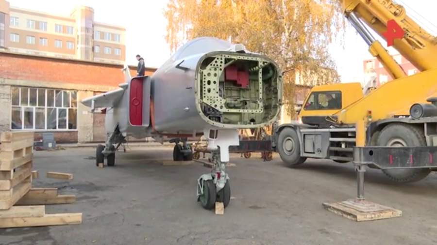 Опубликовано видео установки истребителя-бомбардировщика Су-24 в Новосибирске