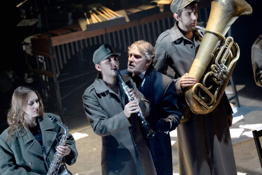 В сцене из спектакля «Война» режиссера Владимира Панкова по произведениям «Илиада» Гомера, «Записки кавалериста» Николая Гумилева и «Смерть героя» Ричарда Олдингтона