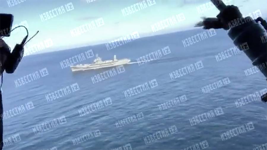 На записи видно, как корабль направляется к проливам в юго-западной части Черного моря.