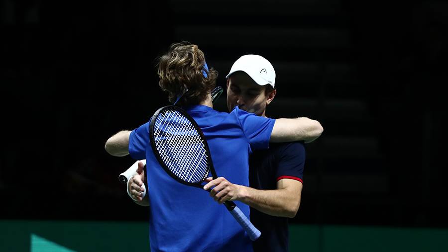 До этого Рублёв в одиночном разряде уступил Лопесу со счетом 6:2, 3:6, 4:6, а Даниил Медведев сравнял счет, победив Пабло Карреньо Бусту — 6:2, 7:6 (7:3).