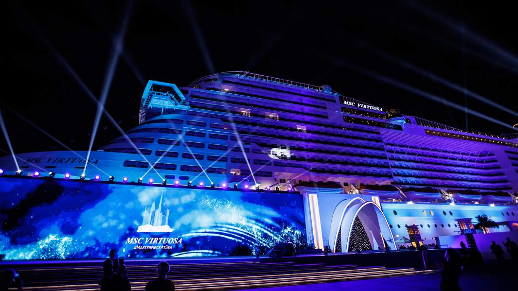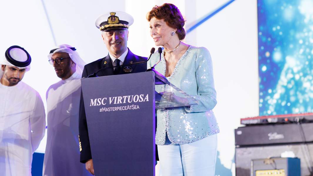 Церемония крещения круизного лайнера — главный день в его жизни. Подобно новорожденному ребенку крестная мать нарекает судно именем и становится покровителем, благословляя его на безопасное путешествие. Крестной мамой всех судов MSC Cruises по сложившейся с 2003 года традиции становится великая итальянская актриса Софи Лорен. MSC Virtuosa стал ее 17-м «крестником», что дает итальянке право претендовать на абсолютный рекорд в этой области. Заметим, что еще 18 ноября 87-летняя Софи Лорен была на Багамах, где «крестила» лайнер MSC Seashore, а уже 27 ноября под аплодисменты и мелодию Zoo Be Zoo Be Zoo из картины «Миллионерша» с ее участием вышла на сцену в Дубае.