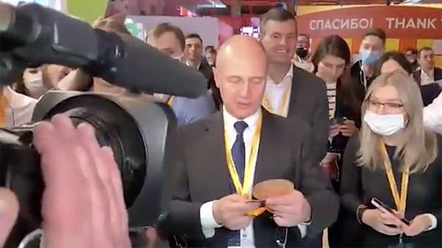 В окружении журналистов он снял с ели елочную игрушку, на которой было написано желание девочки из Московской области.
