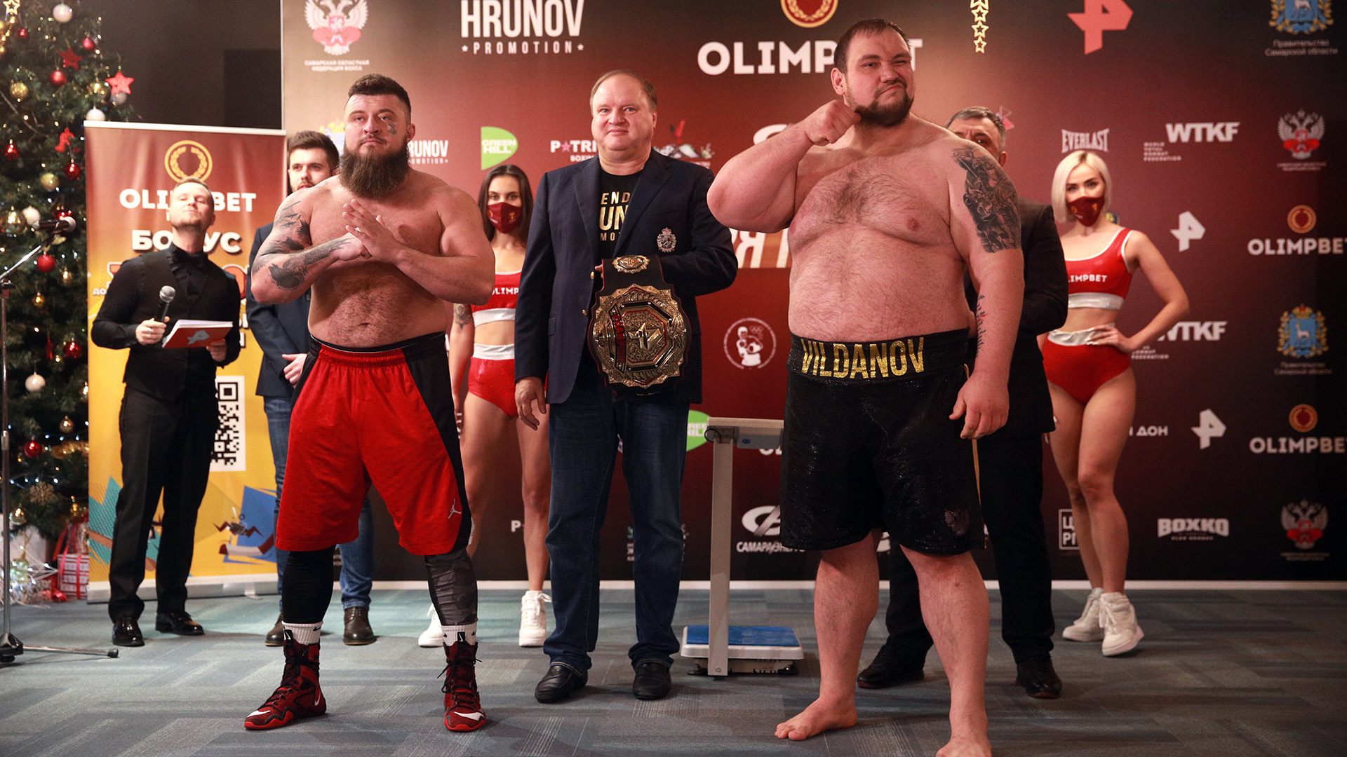 Рост Большого Папы — 190 см, а вес — порядка 180 кг. Причем когда он начал биться на пощечинах, то весил 220 кг. Макс Топор тоже немаленький парень — его вес около 100 кг. На пресс-конференции между бойцами произошла потасовка — когда была дуэль взглядов, Вильданов дал сопернику пощечину, тот ответил, и понеслась.