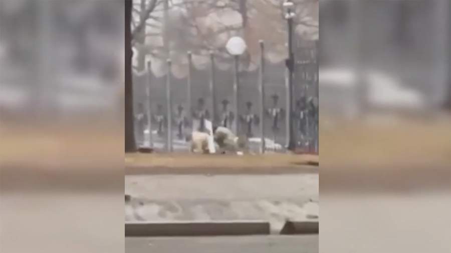 На видео слышен звук выстрела. После этого человек в камуфляжной одежде падает. Официального подтверждения информации о стрельбе и ранении силовика пока нет.