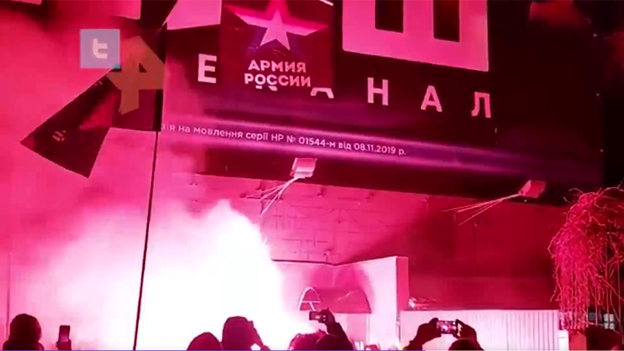 Днем ранее украинские националисты также провели несанкционированную акцию у здания оппозиционного телеканала «Наш» в Киеве. Протестующие обвиняют телеканал в пророссийских взглядах и требуют закрыть его.