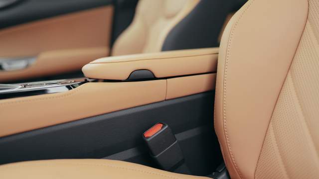 Вместе с аудиофильским стилем интерьер лишился и слоистости — когда материалы разной фактуры как бы накладывались друг на друга. Теперь он выглядит даже излишне скромно, хотя тактильно стал приятнее — везде мягкие панели. Декоративные вставки в дверях крохотные, хрома совсем чуть-чуть и только двухцветные комбинации обивки как-то разнообразят картину.