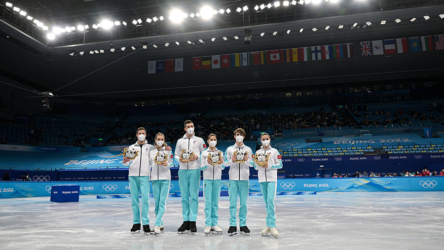 7 февраля сборная Олимпийского комитета России (ОКР) завоевала золотую медаль в командном турнире по фигурному катанию на Олимпиаде-2022. Олимпийскими чемпионами стали Марк Кондратюк (мужское одиночное катание), Анастасия Мишина и Александр Галлямов (парное катание), Виктория Синицина и Никита Кацалапов (танцы на льду), Камила Валиева (женское одиночное катание).