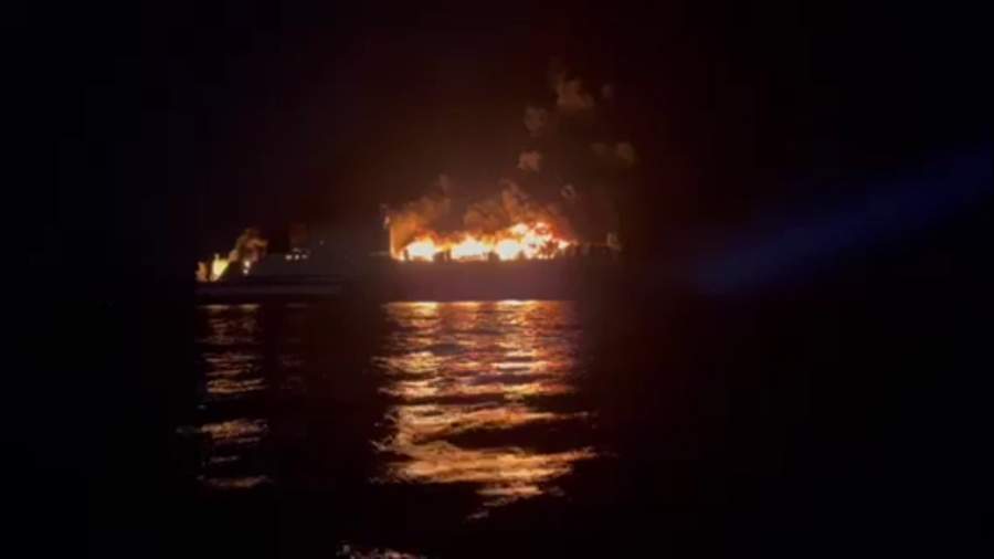 Горящий лайнер у берегов Греции