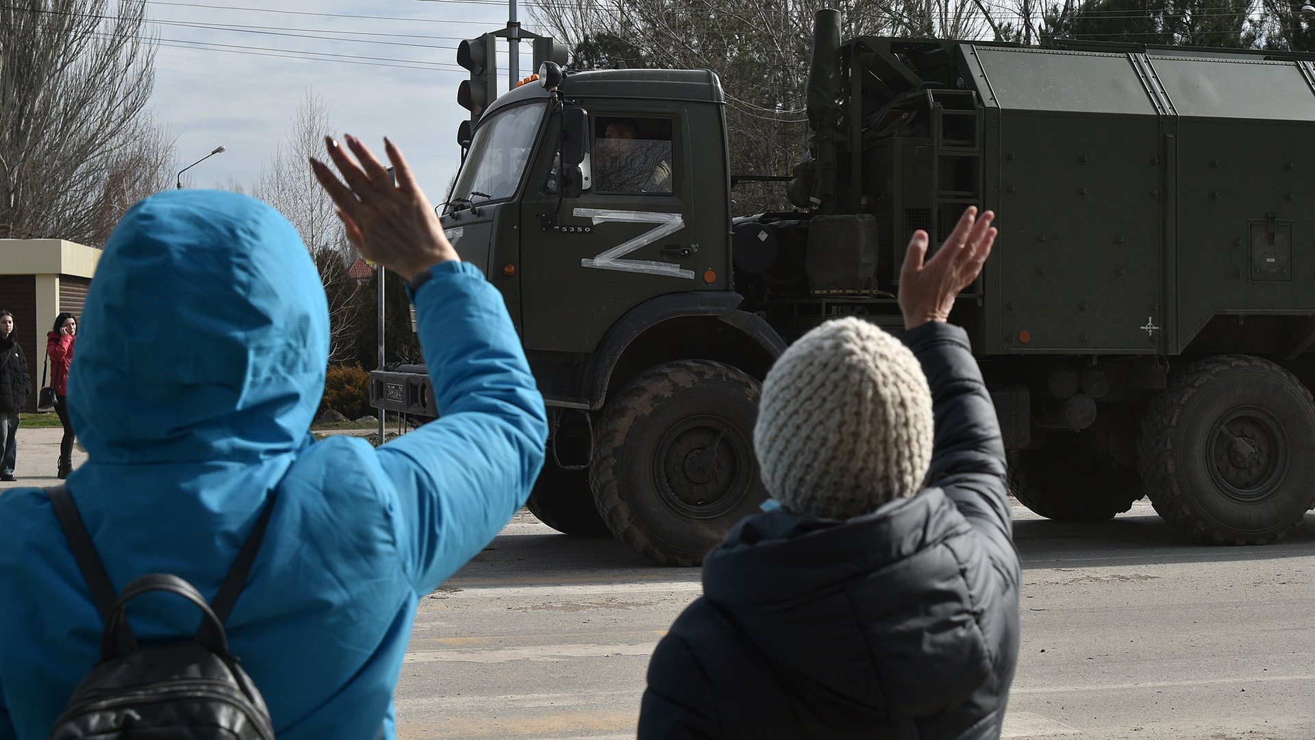 Жители Мелитополя поприветствовали российских военных флагами
