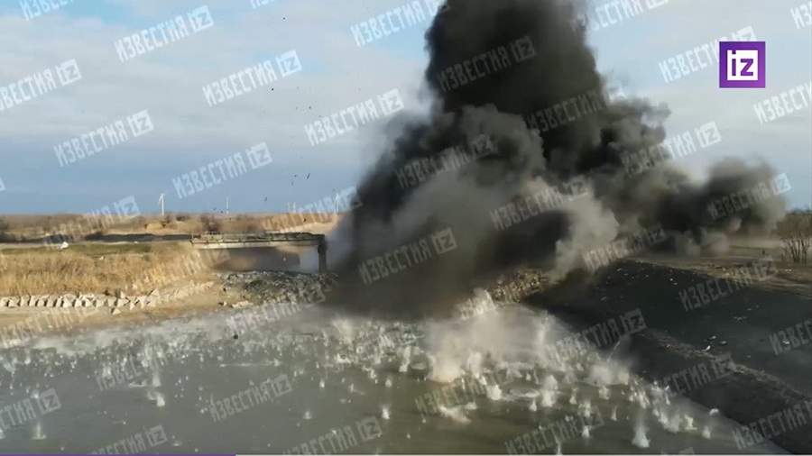 Российские военные взяли под охрану узел Северо-Крымского канала в Херсонской области в целях устранения водной блокады Крыма ранее 26 февраля. Момент ликвидации дамбы сняла корреспондент телеканала «Известия» Мэри Бадунц.