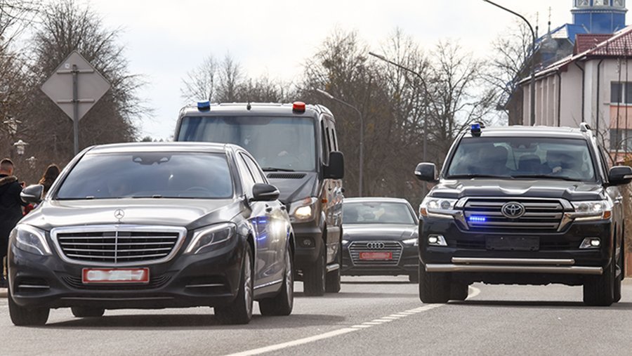Кортеж из нескольких автомобилей прибыл к месту переговоров в сопровождении автомобилей белорусских ДПС. На подъезде к зданиям, где пройдут переговоры, выставлены автомобили белорусских правоохранителей, журналистов к ним не пускают.