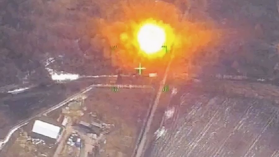 Минобороны России 13 марта обнародовало видеозапись с кадрами уничтожения полевого командного пункта Вооруженных сил Украины (ВСУ) точечным ударом высокоточным снарядом «Краснополь» артиллеристов ВС РФ.