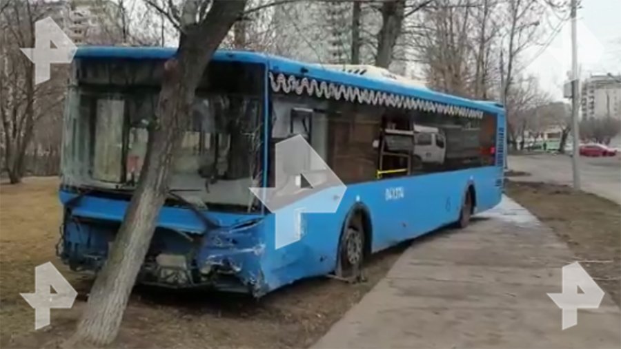 Как следует из снятого на месте происшествия видео, автобус выехал на обочину, проехал тротуар для пешеходов и наехал на дерево. При этом он сильно смял легковой автомобиль.
