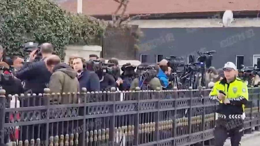«Можно сделать вывод об этом, лишь посмотрев на эту толпу журналистов, выстроившихся около дворца в Стамбуле», — отметил корреспондент, демонстрируя большое количество сотрудников СМИ у Дворца Долмабахче.