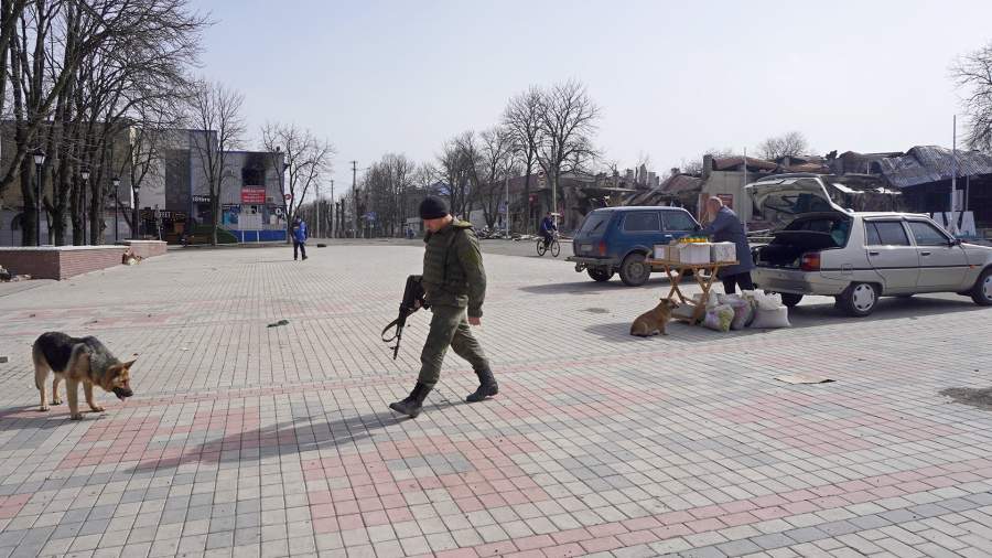 Тела украинских солдат, которые еще недавно лежали под солнцем, преданы земле. Возле разрушенных учреждений несут дежурство резервисты, чтобы в здания не могли попасть мародеры. Появилась и мусороуборочная машина. В целом от первого шока город, кажется, оправился.