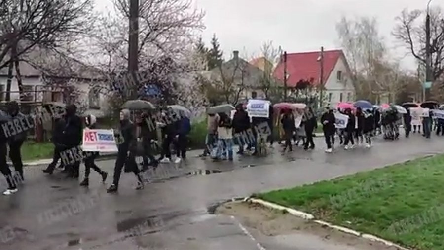 Протестующие принесли с собой плакаты, на которых написано: «ОБСЕ, позор», «ОБСЕ, вам здесь на место», «ОБСЕ, кровь наших соотечественников на ваших руках».