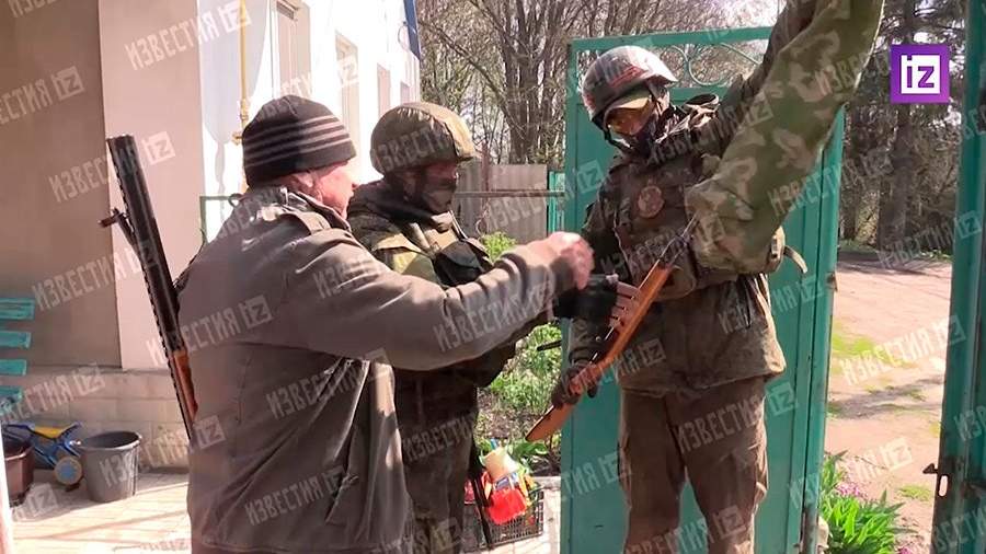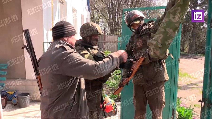 Корреспондент «Известий» Кирилл Ольков 23 апреля показал, как жители в освобожденном российскими войсками селе в Харьковской области сдают незарегистрированное оружие.