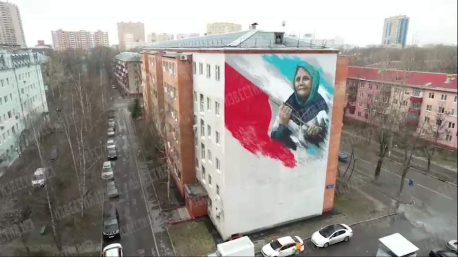 Граффити Бабушка с флагом коптер