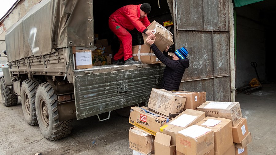 По прибытии в пункт назначения весь гуманитарный груз выгрузили на склад, который также охраняют российские военные. Затем волонтеры сформировали продуктовые наборы и выдали их жителям города Херсона и области.