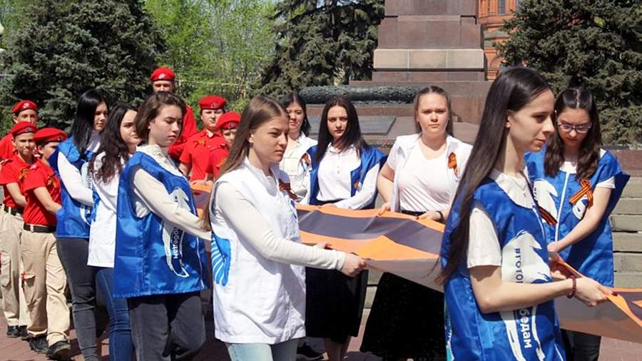 В Волгоградской области в рамках акции «Георгиевская ленточка» представили уникальную георгиевскую ленту, длина которой достигает 10 м. Торжественный марш состоялся 27 апреля.