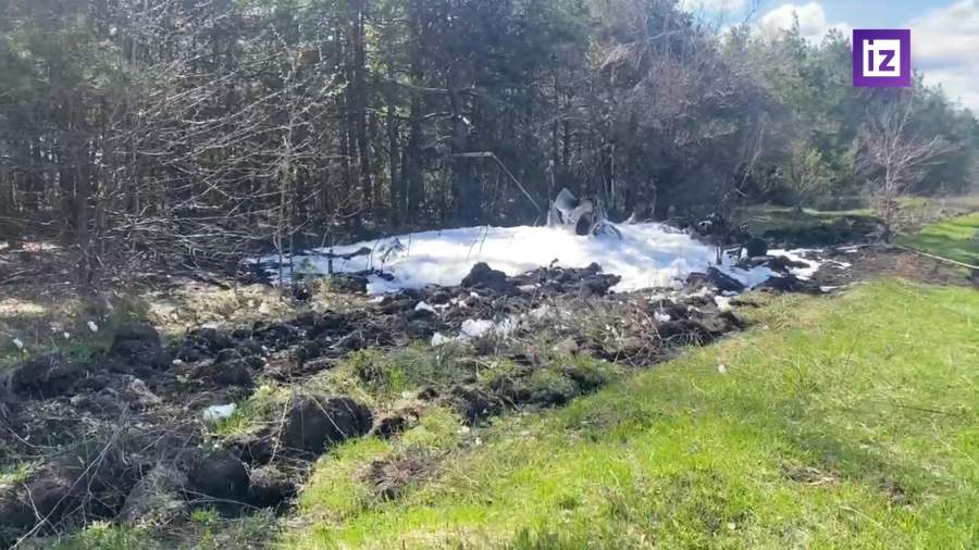 Первые кадры с места падения вертолета в Саратове