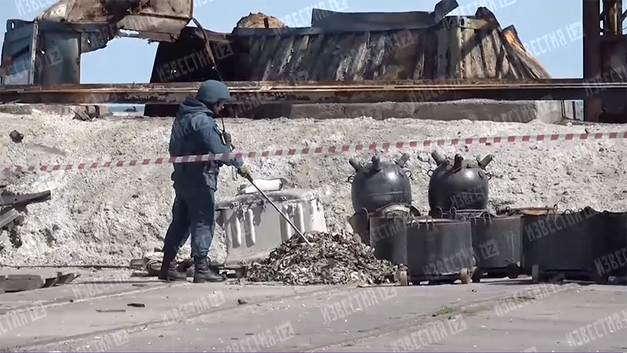 24 апреля корреспондент «Известий» Роман Польшаков показал освобожденный от националистов порт в Мариуполе. Фура ранее использовалась украинскими военными как склад с боеприпасами. Она была спрятана в цеху судоремонтного завода, однако после попадания в машину снаряда от нее ничего не осталось.