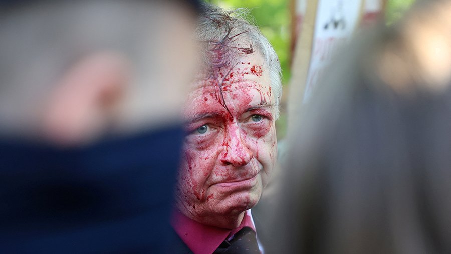 Посла, его супругу и группу дипломатов 9 мая поджидали в Варшаве возмущенные поляки и украинцы, которые преградили им путь, выкрикивая оскорбительные лозунги, после чего облили красной краской. Рядом завязалось несколько потасовок.