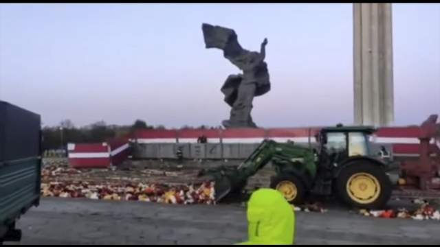 Ранним утром 10 муниципальные власти убрали цветы и свечи с помощью коммунальной техники, в частности бульдозеров. Как писали местные СМИ, в предыдущие годы ничего подобного не происходило. Кадры облетели соцсети и вызвали волну возмущения. Несмотря на противостояние городских властей, рижане стали вновь и вновь приносить цветы к мемориалу.