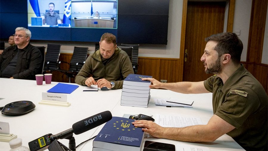 Президент Украины Владимир Зеленский подписал заявку на вступление страны в Евросоюз 28 февраля. На следующий день резолюцию о предоставлении Украине статуса страны-кандидата поддержал Европарламент. 30 апреля Украина передала в ЕС заполненную вторую часть опросника на получение статуса кандидата на вступление в Евросоюз.