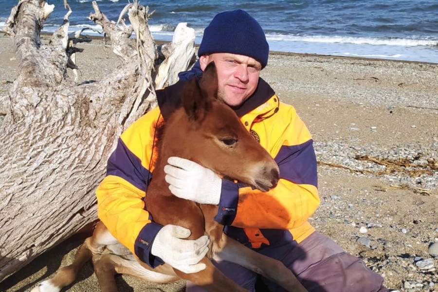 Сотрудники поисково-спасательного подразделения села Рудная Пристань у города Находка спасли от смерти истощенного новорожденного жеребенка, который не мог самостоятельно передвигаться
