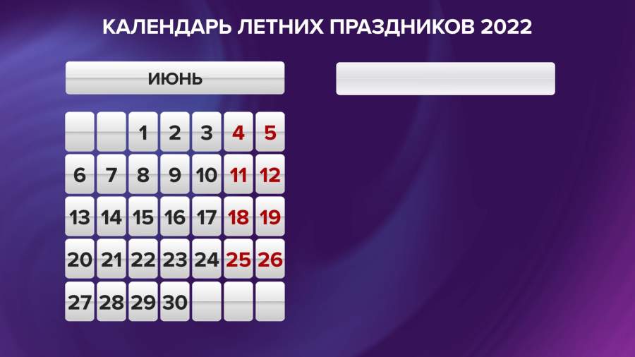 Календарь летних праздников 2022. Графика
