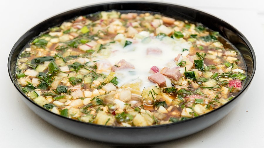 «Все зависит от ингредиентов, конечно, но, если мы берем картофель, огурцы, редис, яйца, мясные изделия, зелень и квас, то на 100 г получится 60 ккал. С жирной колбасой будет выше, но если вы любите блюдо с кефиром, то все будет зависеть от жирности кисломолочного продукта», — указала Хоркавая.