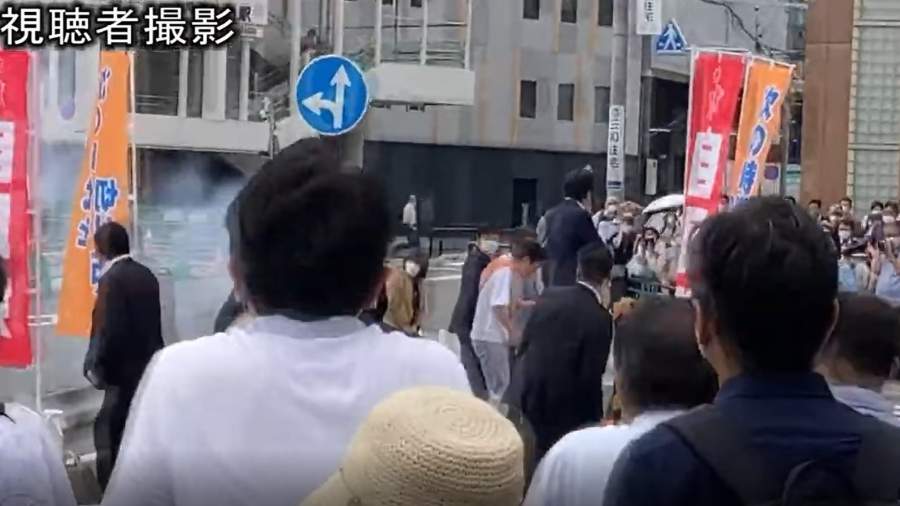 Момент выстрела в Синдзо Абэ